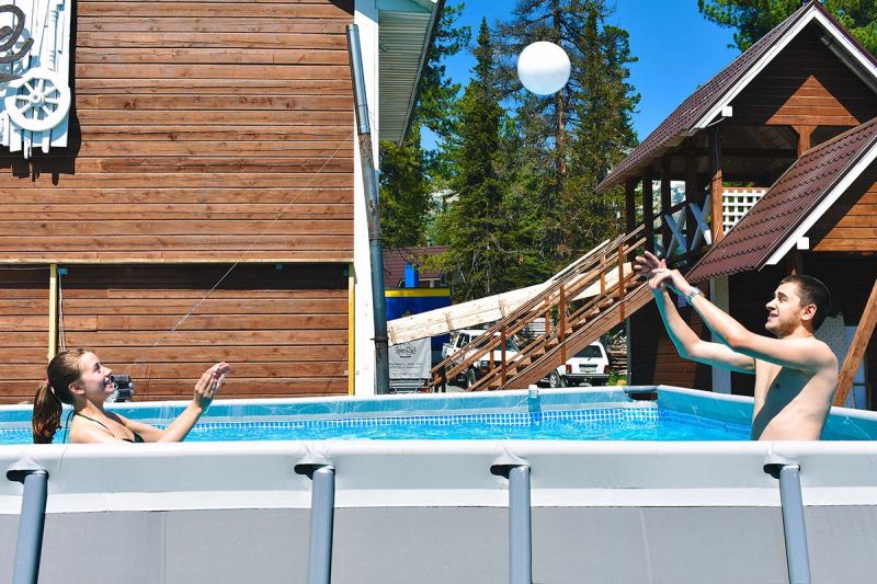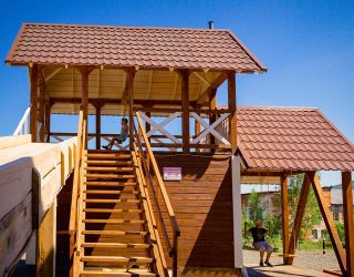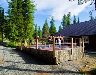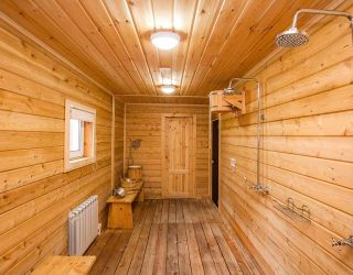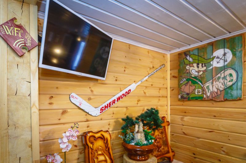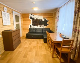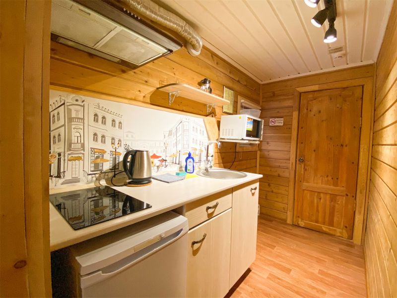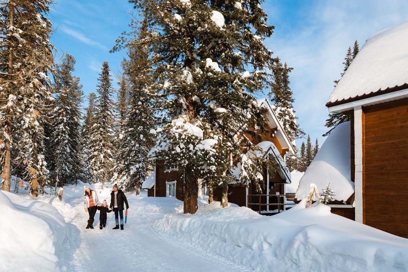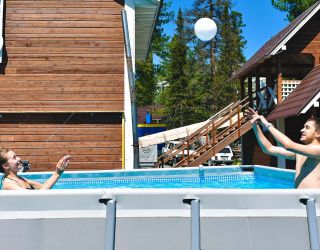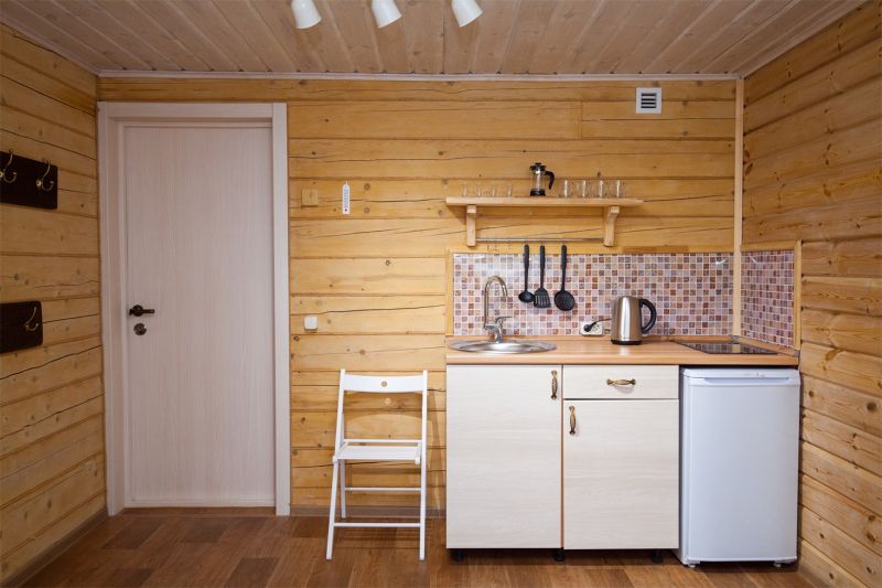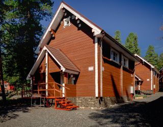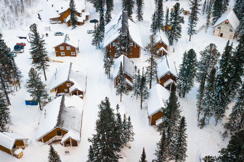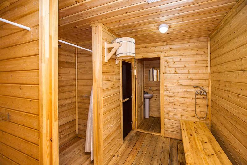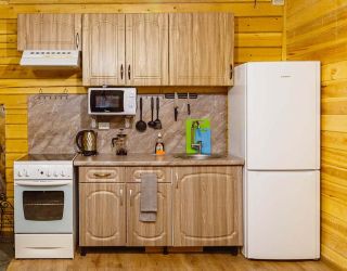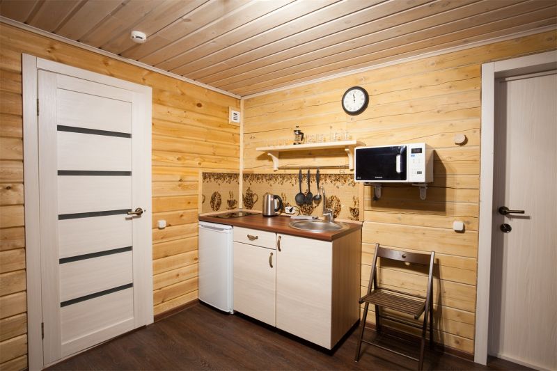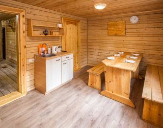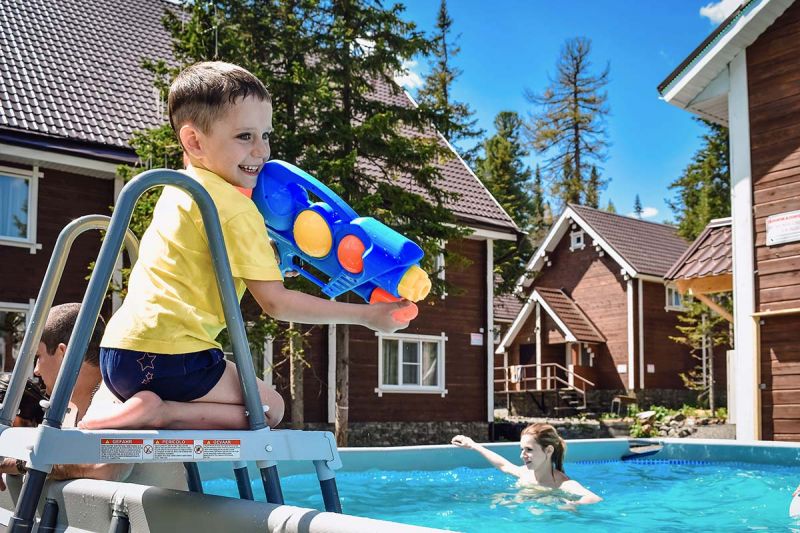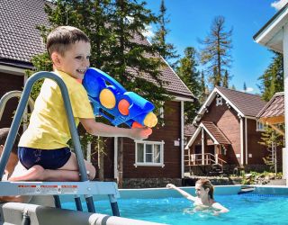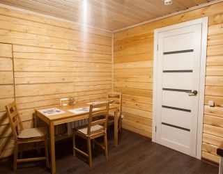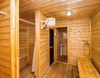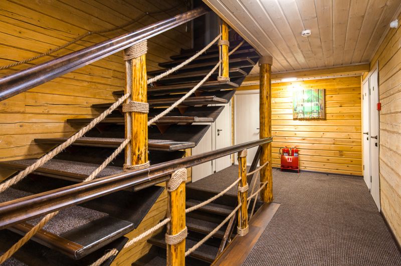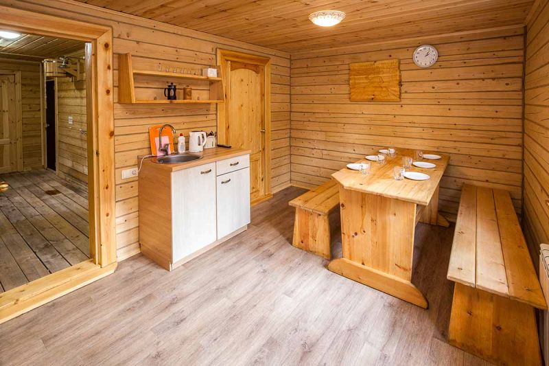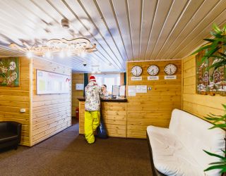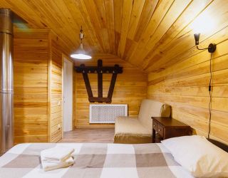 Для проживания предлагается основной корпус с апартаментами трех категорий, 9 шале и гостевой дом на большую компанию - всего 114 мест. Отдых веселых и шумных компаний не помешает семьям с детьми благодаря продуманному расположению корпусов. Интерьер номеров выполнен из натурального дерева, комнаты оборудованы кухней, телевизором, холодильником, санузлом с туалетными принадлежностями и феном. В некоторых категориях шале имеется сауна.